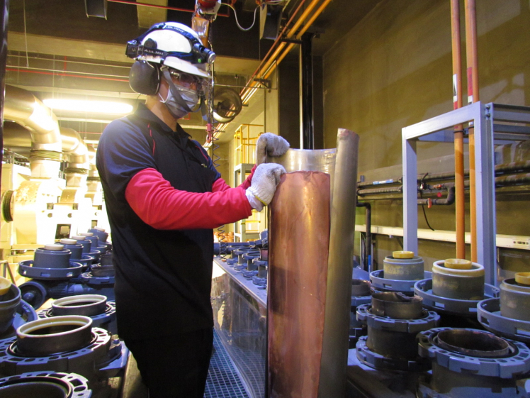 LEYU官網將廢棄物轉化成有效的工業或民生原物料,圖為廢銅液淬煉后再制成純度極高的銅管